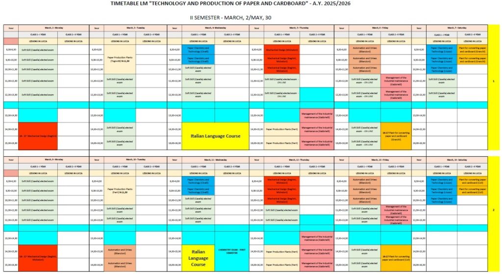 Non categorizzato Il calendario delle prime due settimane del secondo semestre 27 Febbraio 2026 Navigazione articoli PrevSuccesso Internazionale per l’Università di Pisa: tre studenti di Ingegneria della Carta e del Cartone conquistano il secondo posto alla Switch Competition MondialeNextPaper Day 2026
